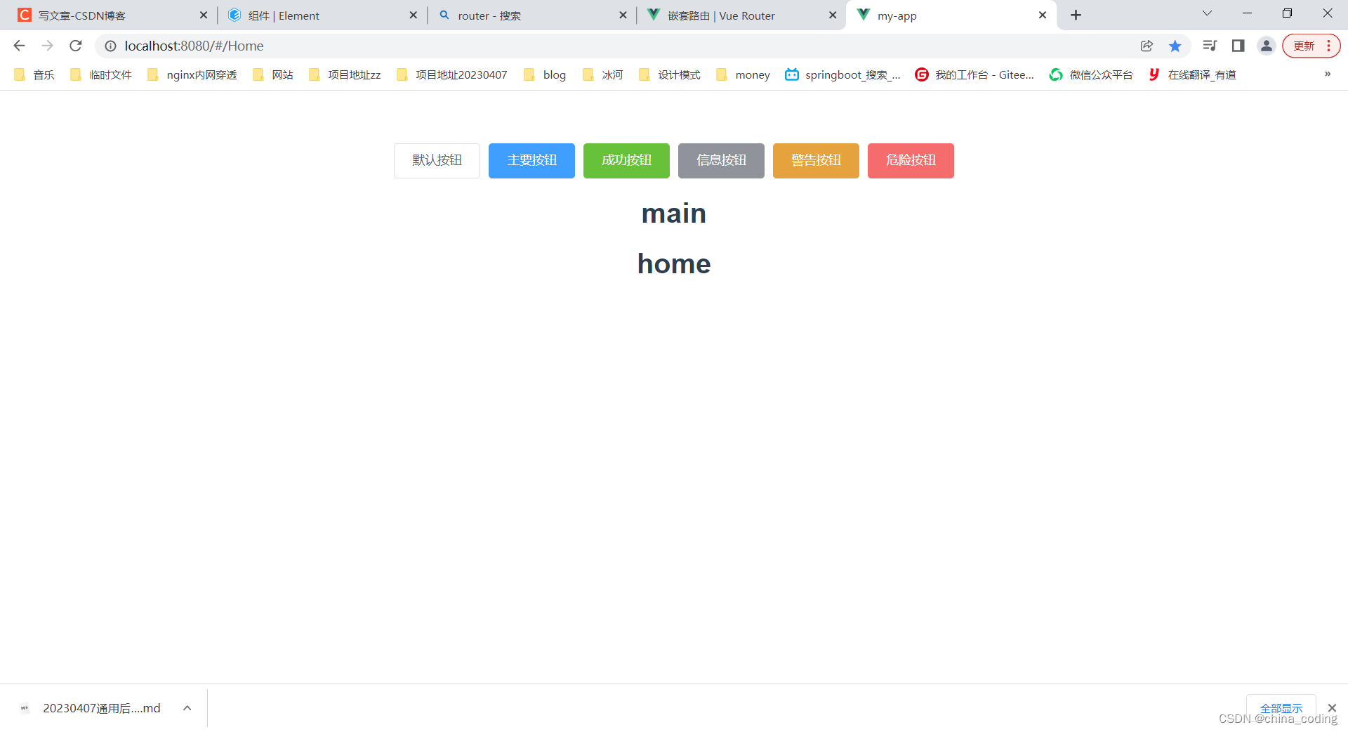 App.vue加入element-ui的按钮